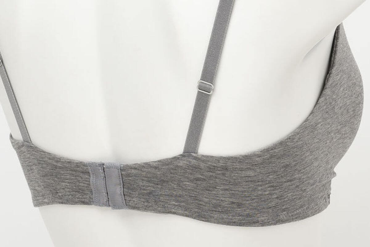 「まず注目していただきたいのはストラップ。肩にストラップがくいこみにくいように幅を広くとり、さらに『袋縫い(※1)』という縫い方をすることでゴムが直接、肌にあたらないようにしています。またバックラインは364シンプル・レースのようなU字ではなくストレートなのですが、こちらも幅を広くすることで安定感を増し、背中に段差が出にくいようにしました」。